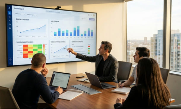 Daily active users. Most SaaS platforms provide basic usage data in their admin settings. Check weekly how many team members logged into the tool at least once per day during the previous week. A team of five where three people log in daily is a healthy adoption pattern. A team of five where one person logs in daily is a sign that the implementation has stalled.